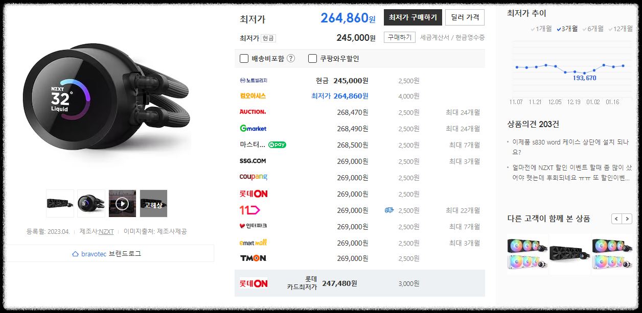 일체형 수냉 쿨러의 성능이야.. 거기서 거기인 느낌이고